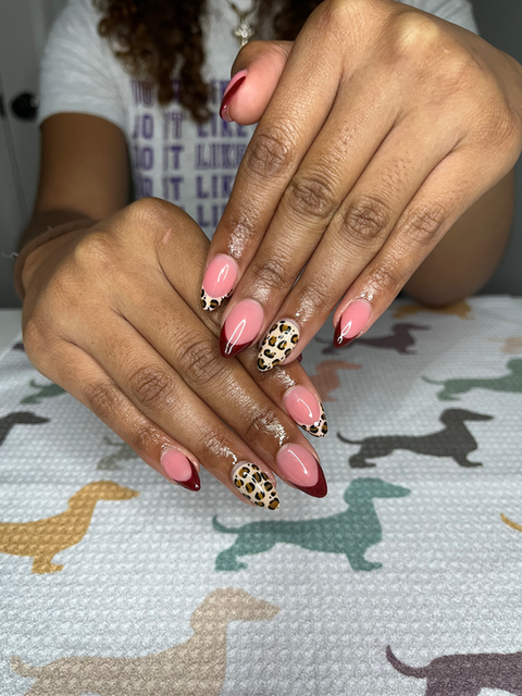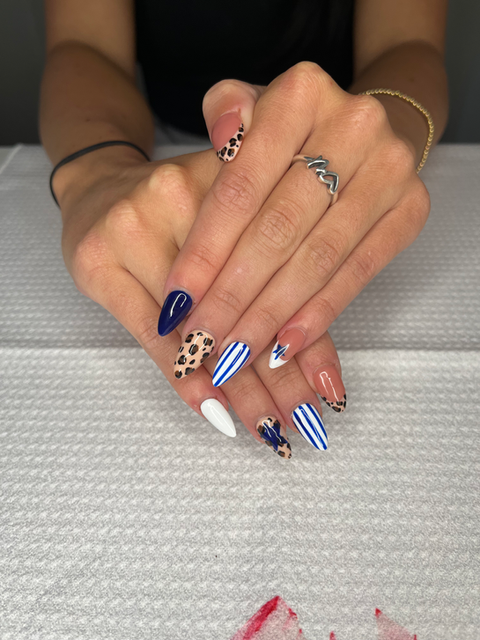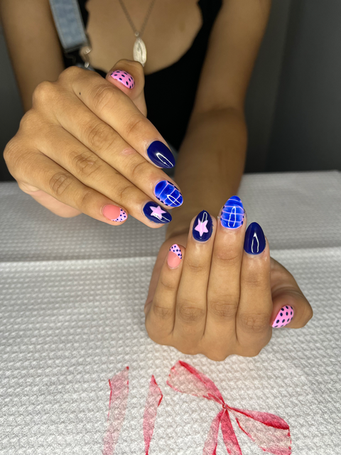 Gel X tips with solid color or basic design.